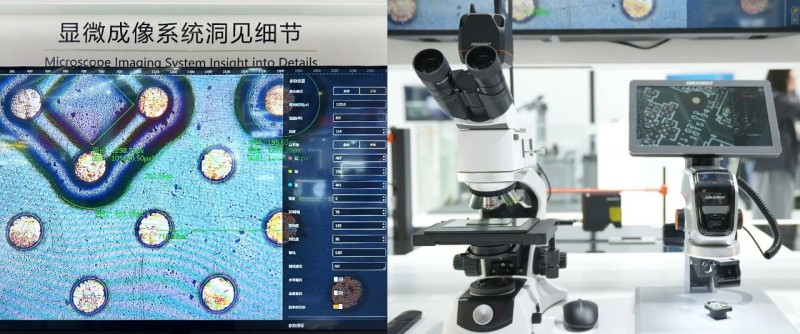 第一套是海康机器人自研的变倍体式显微成像系统,减轻工厂检验人员长时间检测带来的眼睛疲劳,且相机内部植入了几何测量算法,可完成点、线、圆、矩形、角度等测量。