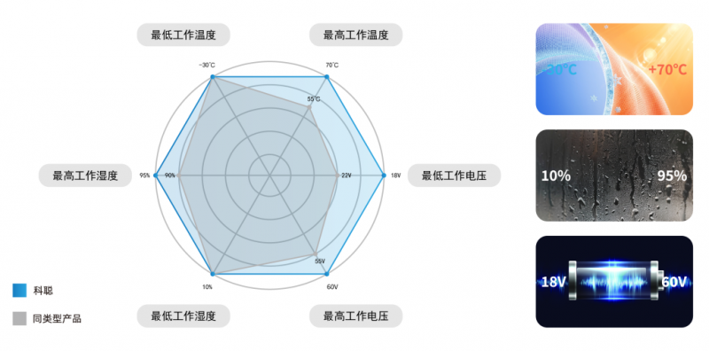 工作温度范围-30℃~+70℃,无惧严寒酷暑,长期稳定运行;